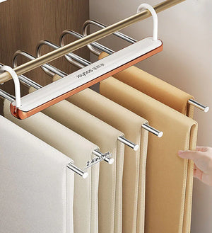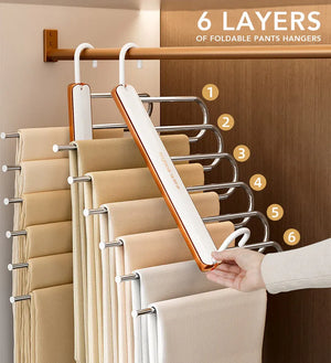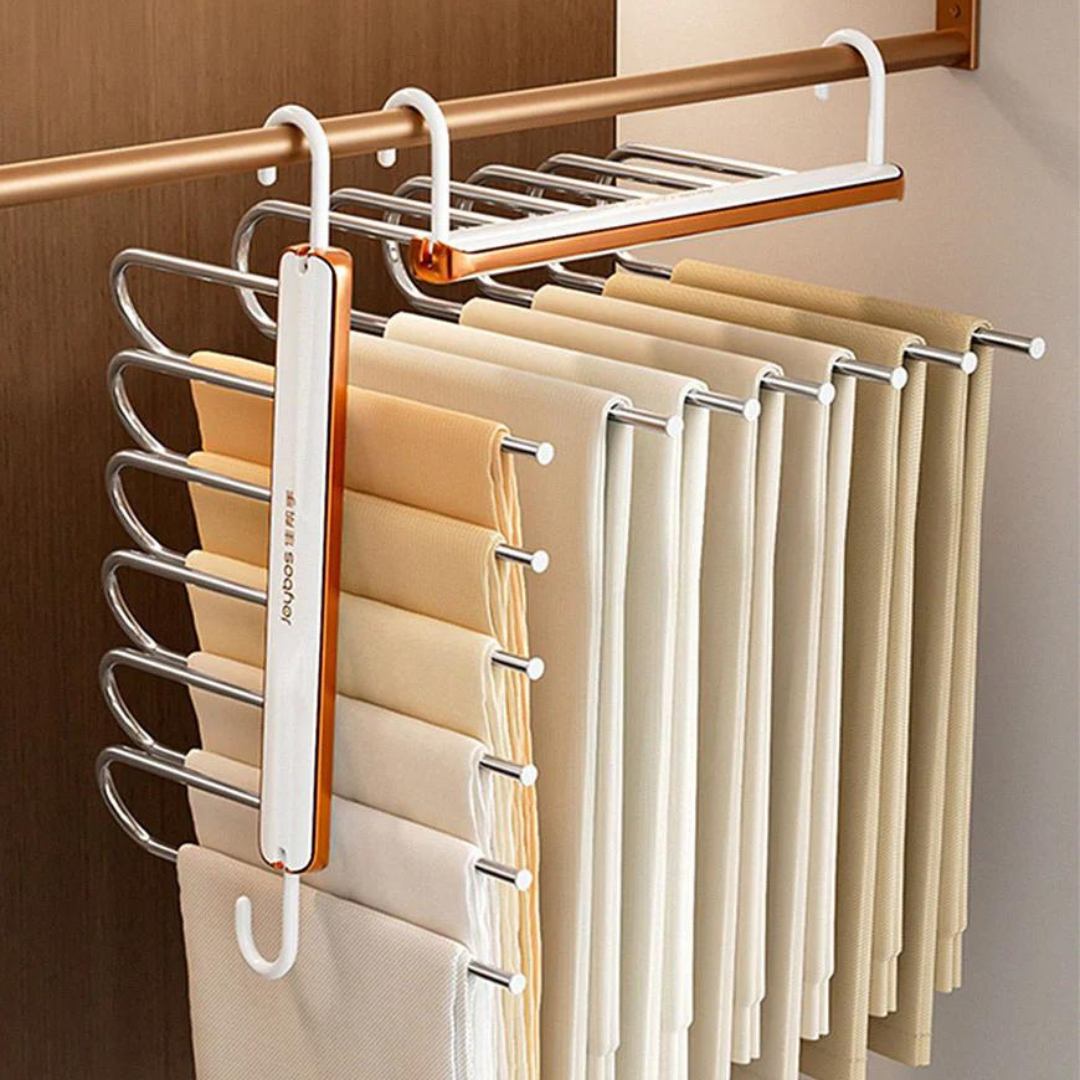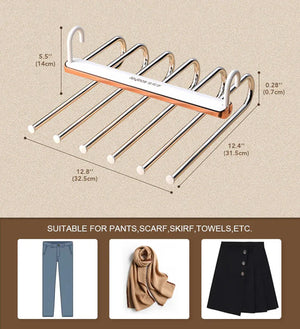 حافظ على خزانتك منظمة وموفرة للمساحة باستخدام علاقة البنطلونات متعددة الطبقات من Joybos. تم تصميم هذه العلاقة الذكية لتخزين وتنظيم البنطلونات والأوشحة والمناشف والملابس الأخرى بطريقة مرتبة وأنيقة، مع توفير 80٪ من مساحة الخزانة.