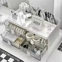 منظّم مكتب أكريليك شفاف مع أدراج للتخزين