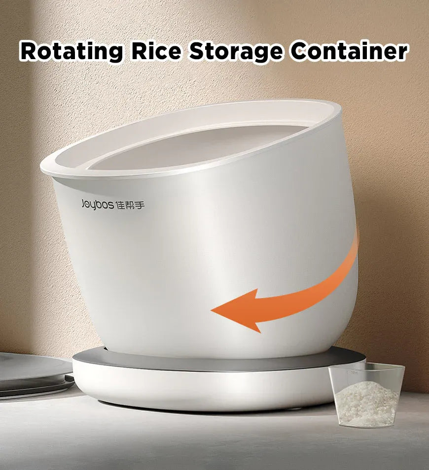 حافظ على تنظيم مطبخك وتخزين الأرز بطريقة عملية وأنيقة مع حاوية تخزين الأرز الدوارة من Joybos. تم تصميم هذه الحاوية لتخزين الأرز بفعالية وحمايته من الرطوبة والغبار، وتتميز بقاعدة دوّارة تجعل الوصول إلى الأرز سهلًا ومريحًا.