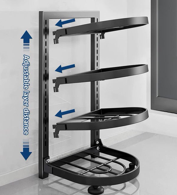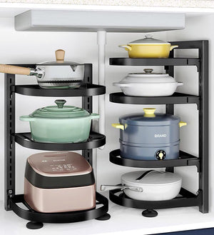 ف تخزين زاوية متعدد الطبقات مثالي لتنظيم أدوات المطبخ والأواني. يتميز بتصميم قابل للتعديل حيث يمكن تعديل المسافات بين الطبقات لتناسب حجم الأواني والمقالي. مصنوع من مواد قوية وعملية، مما يجعله مثاليًا للاستخدام في المساحات الصغيرة مثل زوايا المطبخ. يمكنه استيعاب الأواني الكبيرة والصغيرة بسهولة، ويوفر حلًا رائعًا لتوفير المساحة وتنظيم أدوات المطبخ بشكل أنيق.